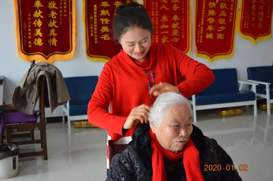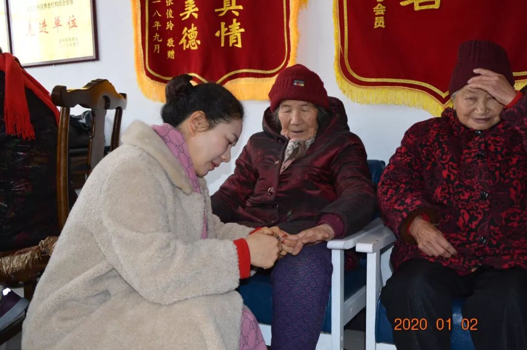 日间照料中心自己熬制的腊八粥和饺子,盛在碗里端给日间照料中心的老人们品尝。中心理事长张芳为老人修剪指甲,帮助老人以全新的面貌迎接新春佳节。